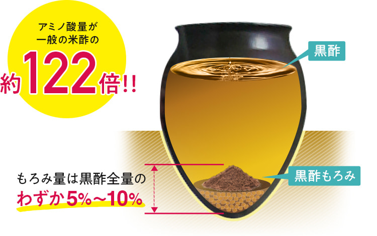米、米麹、水を使い作られる黒酢の中に沈殿物として生まれ、何よりもアミノ酸をはじめとする栄養素が詰まっているのが「黒酢もろみ」。